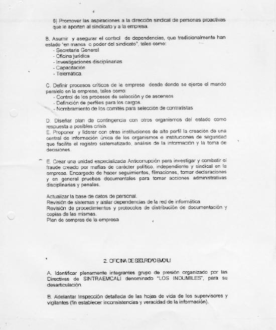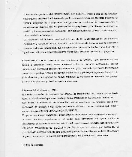 Anexo al informe de inteligencia militar sobre la actividad sindical en el marco de las Empresas Municipales de Cali (SINTRAEMCALI).