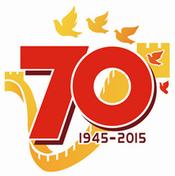 The official logo for the commemoration highlights a striking, dominant red number "70" in the center. Above the "70" five doves fly over and behind it the Great Wall spreads in the shape of letter "V."