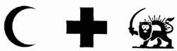 (c) the following emblem in red on, and completely surrounded by, a white ground, that is to say, a lion passing from right to left of, and with its face turned towards, the observer, holding erect in its raised right forepaw a scimitar, with, appearing above the lion's back, the upper half of the sun shooting forth rays, or the designation "Red Lion and Sun";