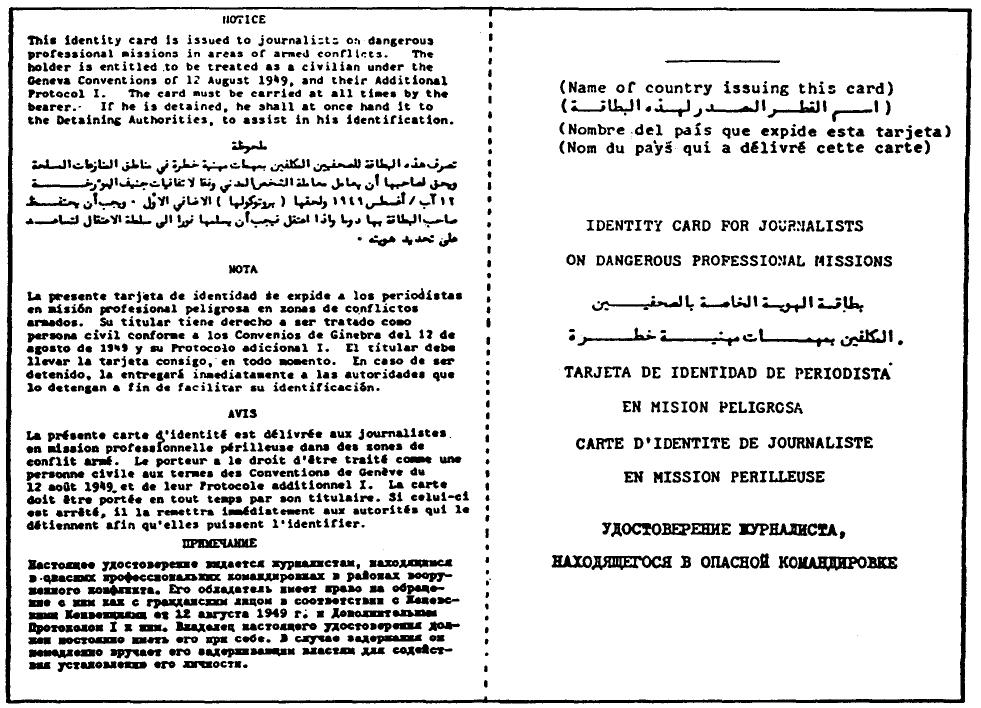 Identity Card for Journalists on Dangerous Professional Missions