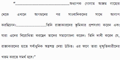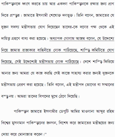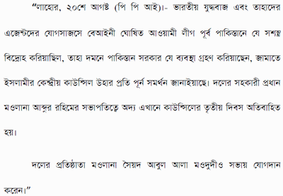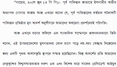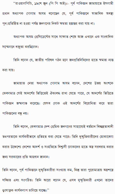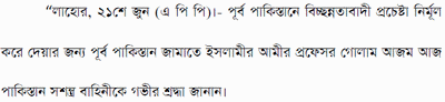 363. Accused Prof. Ghulam Azam, the Ameer of East Pakistan Jamaat-e-Islami delivered a reception speach at a local hotel which was published in the "Daily Pakistan" on 26.09.1971 under the caption:-