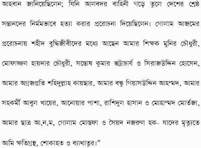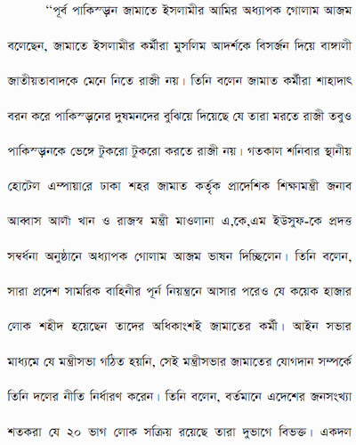 358. Let us examine some citations from nationally and internationally reputed news reportings as well as citations from books written by renouned writers to have a true picture about the role of the accused and Jamaat-e-Islami during the War of Liberation. In this regard some citations are quoted below: