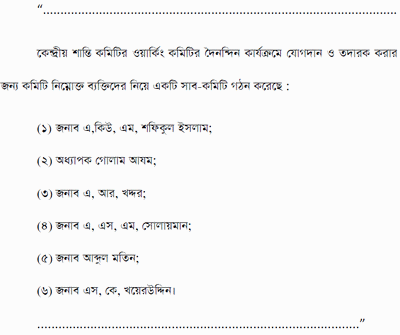 355. From the submissions of the learned lawyers of both the parties as well as from the documents submitted by both the parties, it is an admitted fact that accused Ghulam Azam was the Ameer (Head) of the then East Pakistan Jamaat-e-Islami during 1969 to 1971. It is also undisputed that the accused was a prominent member of the 140-member central peace committee which was also published in the Daily Purbodesh on 11.4.1971 (Ext.101). It is also undisputed that he was a member of the 21-member Executive committee of the said central peace committee and he was also a member of the 6 -member sub-committee of the said Executive committee. Newspaper clippings (Ext. Nos. 41,57,59) corroborate the inclusion of the accused in the said committees.