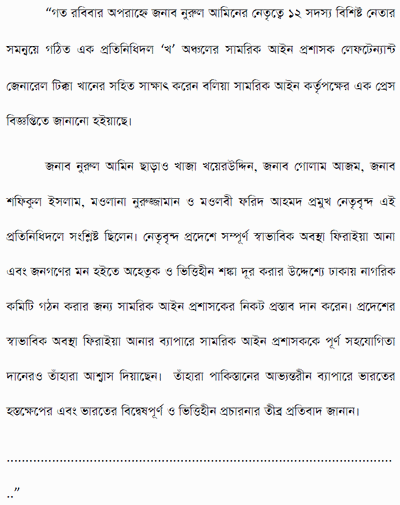 Source:- 'PATRIOT' New Delhi 23 December 1971 also published in Bangladesh Documents page 573.