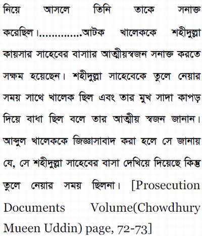 417. A report of Special Branch of Police, district Feni [Prosecution Documents Volume (Chowdhury Mueen Uddin), page 290] also goes to show that accused Chowdhury Mueen Uddin had come to his native village, during the regime of Ziaur Rahman and H.M Ershad, by a vehicle of Pakistan embassy in Bangladesh.