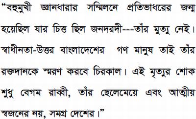 14. Incontrovertibly the ways to self-determination for the Bangalee nation was strenuous, swabbed with enormous blood, strive and sacrifices. In the present-day world history, conceivably no nation paid as extremely as the Bangalee nation did for its self-determination. The nation is indebted to their unprecedented and brave sacrifices