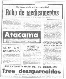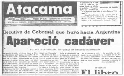 1º de octubre de 1973: el diario "Atacama" de Copiapó informa: "Tres de cinco altos funcionarios de "Cobresal", que intentaron huir hacia Argentina a través de un paso cordillerano, se encuentran desaparecidos en la montaña helada. Patrullas han salido en su búsqueda. Entre los desaparecidos está el director del semanario El Andino, Carlos Bascuñán Mourges. La información fue confirmada desde Potrerillos por el jefe de la Zona en Estado de Sitio, Mayor Luis Alarcón ".