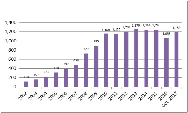 | 2017* | 130.9 | 501.9 | -371.0 |