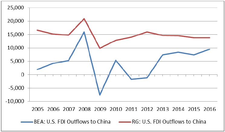 - A January 2017 study prepared by Oxford Economics for the U.S.-China Business Council estimated that in 2015 U.S. exports of goods and services to China plus bilateral FDI flows directly and indirectly supported 2.6 million U.S. jobs and contributed $216 billion to U.S GDP. The study further predicted that U.S. exports of goods and services to China would grow from $165 billion in 2015 to over $520 billion by 2030. |5|