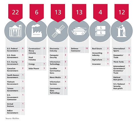"Incluso nosotros estamos sorprendidos por la diversidad de organizaciones que han sido víctimas [de los ataques] y nos hemos quedado desconcertados por la audacia de los autores", ha asegurado el vicepresidente de investigación de amenazas de McAfee, Dmitri Alperovitch, en un informe de 14 páginas publicado el miércoles.