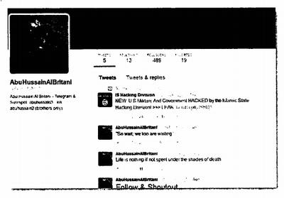 2. Ardit Ferizi, aka"Th3Dir3ctorY" ("FERIZI"), a Kosovo citizen residing in Malaysia, is believed to be the leader of a known Kosovar internet hacking group, Kosova Hacker's Security ("KHS"). In or about April 2015, FERIZI used the Twitter account @ Th3Dir3ctorY to provide unlawfully obtained personally identifiable information ("PII") to an Islamic State of Iraq and the Levant ("ISIL") member, Tariq Hamayun ("Hamayun"), known as "Abu Muslim Al-Britani." In addition, between in or about June 2015 and August 11, 2015, FERIZI provided unlawfully obtained personally identifiable information ("PII") to a second known ISIL member, Junaid Hussain ("Hussain"), known as "Abu Hussain al-Britani." On August 11,2015, in the name of the Islamic State Hacking Division ("ISHD"), Hussain posted a public hyperlink on Twitter with the title "U.S. Military AND Government personnel, including Emails, Passwords, Names, Phone Numbers, and Location Information," which provided ISIL supporters in the United States and elsewhere with the PII for over 1,000 U.S. government personnel, for the purpose of encouraging terrorist attacks against the identified individuals. Some of these individuals reside in the Eastern District of Virginia.