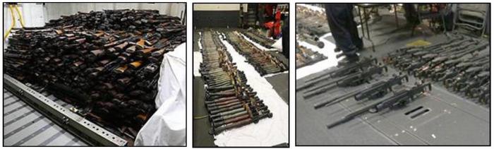 Fusils d'assaut de type Kalachnikov, lance-roquettes et mitrailleuses saisis à bord de l'Adris le 28 mars 2016Source : États-Unis d'Amérique.