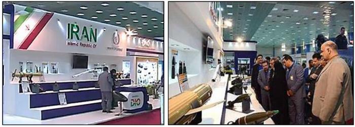 Matériel exposé par des entités iraniennes au cinquième salon iraquien de défenseSource : Agence de presse de la Radio-Télévision de la République islamique d'Iran (photo de gauche) et Agence de presse de la République islamique (photo de droite).