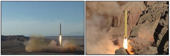 Photos de divers tirs de missiles balistiques effectués par la République islamique d'Iran dans des lieux inconnus, publiées par le Corps des gardiens de la révolution islamique le 9 mars 2016Source : Sepah News (site officiel d'informations en ligne du Corps des gardiens de la révolution islamique).