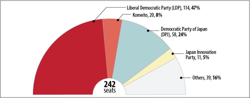 Notes: The Upper House's official name is the "House of Councillors." Upper House members serve for six-year terms, with elections for half the Members occurring every three years. The last Upper House elections were held in July 2013.The DPJ and Alternative Political Forces