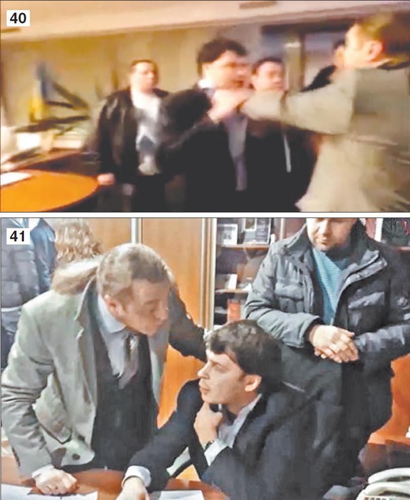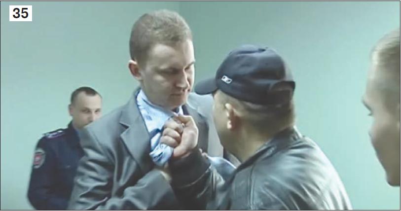 O. Panteleymonov, later commenting on the incident on air, stated that the deputies had a «long and officious conversation» with him. Footage posted on the Internet bear witness to the fact that the MPs beat O. Panteleymonov on the face and head. They blamed him because the television channel that he heads aired the appeal of the President of Russia to the Federal Assembly of the Russian Federation on Crimea -- and that was «not patriotic.» They called O. Panteleymonov a «moskal'» |7| and constantly reminded him that NTU was «disseminating lies» about the events on Maidan.