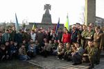 Activists wearing uniforms of the former Ukrainian Insurgent Army (known as UPA)