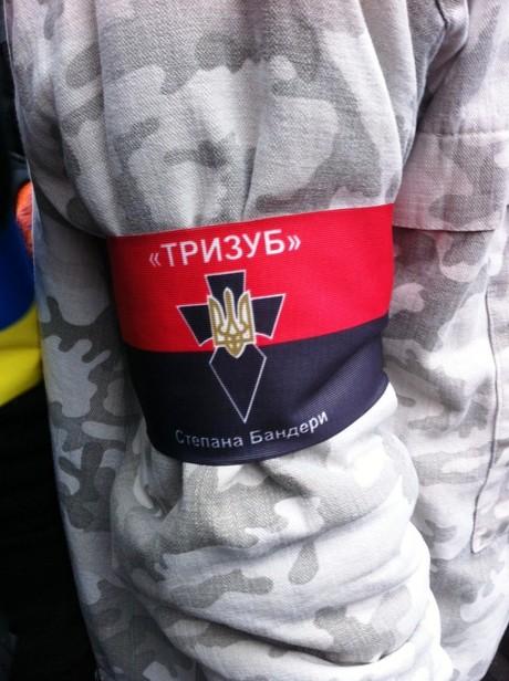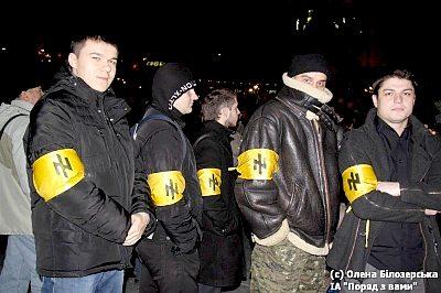Svoboda political party is a Neo-Nazi party, Ukraine's fourth biggest party holding 36 seats out of 450 in parliament. They're also part of the Alliance of European National Movements along with the BNP and Jobbik.