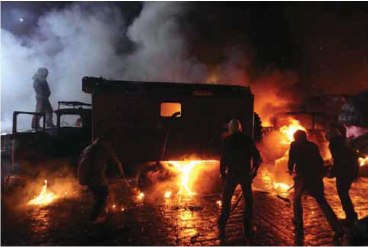 Blazing barricades in Kiev, Jan. 19, 2014.