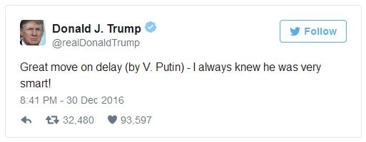 He said his government would instead wait to see how relations developed under the incoming president, Donald Trump, who later described the Russian leader in a tweet as "very smart".