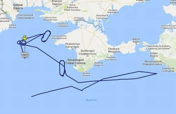 Luego dio unas vueltas en la zona al sur de Sebastopol –la ciudad donde se ubica la principal base de la Flota rusa del Mar Negro– y se dirigió hacia Novorosíisk, que cuenta también con una base naval que forma parte de la Flota del Mar Negro.
