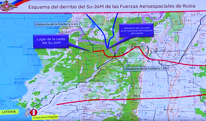 Los aviones turcos le tendieron una emboscada al Su-24 ruso, pues no les hubiera dado tiempo para llegar al lugar desde el aeropuerto más cercano, declaró el comandante de las Fuerzas Aeroespaciales rusas, coronel general Víktor Bóndariev.