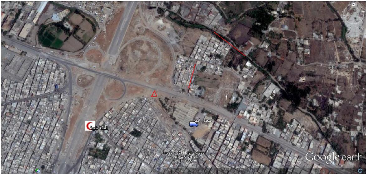 Location where a chlorine rocket landed - attack 26. ALLEGED INCIDENT IN DARAYYA ON 15 FEBRUARY 2015