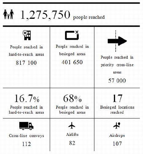 Key points(1) Five inter-agency convoys reached 189,500 people in need in two besieged and eight hard-to-reach locations.