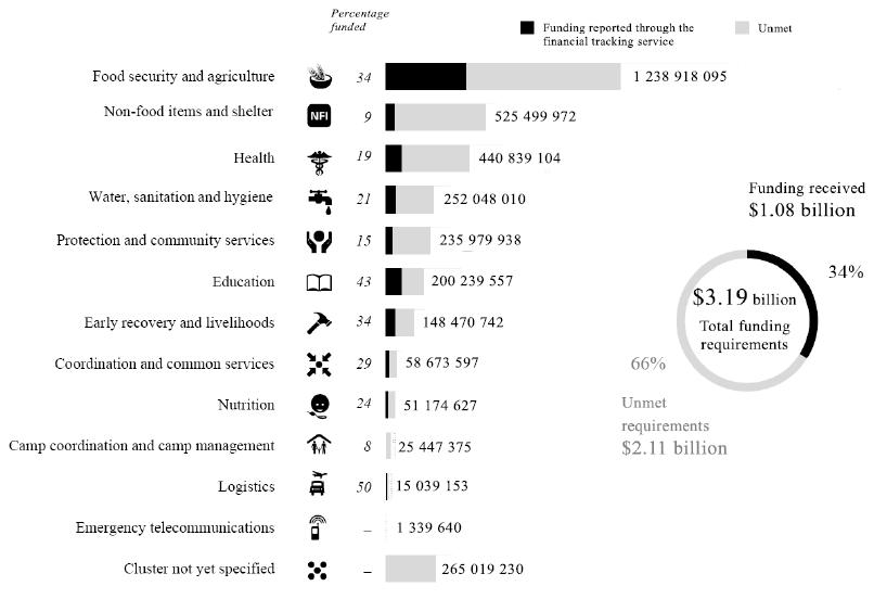 35. The status of the funding of the humanitarian response plan as at 31 August 2016 is shown in figure V.
