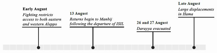 (4) Following Islamic State in Iraq and the Levant (ISIL) being pushed out of Manbij and Jarabulus, large movements of people going back into the towns were recorded.