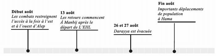 5) L'ensemble de la population de Daraya a été évacuée les 26 et 27 août, suite à un accord entre les autorités syriennes et des représentants locaux.
