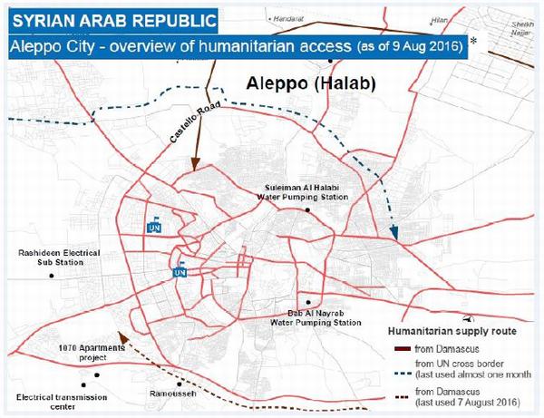 3) L'accès a été irrégulier en dépit de l'ouverture d'une nouvelle route vers l'ouest d'Alep à partir du nord. Les besoins humanitaires restent élevés, en particulier à l'est d'Alep, où les stocks de produits alimentaires et de carburant diminuent. Les efforts faits pour fournir les secours indispensables se poursuivent.