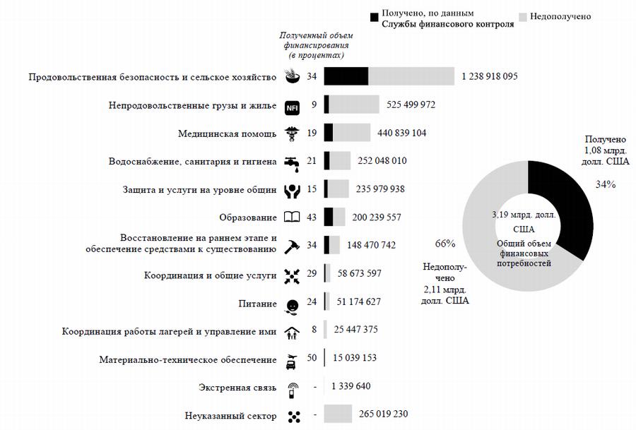 35. Ситуация с финансированием плана гуманитарной помощи по состоянию на 31 августа 2016 года отражена на диаграмме V.
