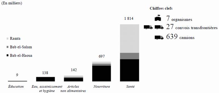 4) Quelque 697 000 bénéficiaires ont reçu une aide de l'ONU et de ses partenaires dans le cadre d'opérations transfrontières organisées à partir de la Jordanie et de la Turquie.