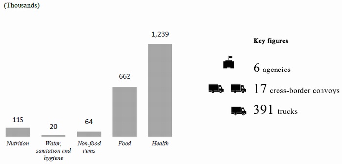 Number of beneficiaries assisted by the United Nations and its partners per cluster through cross-border humanitarian deliveries, July 2017