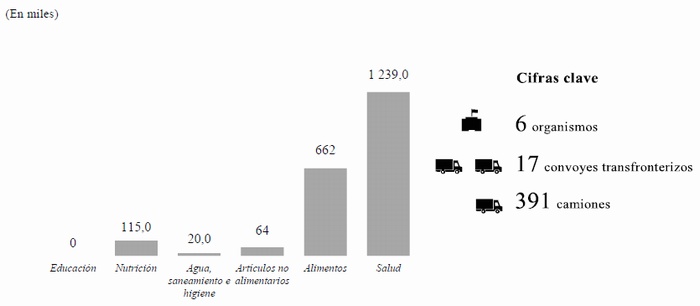 Número de beneficiarios a los que prestaron asistencia las Naciones Unidas y sus asociados, por grupos, mediante envíos humanitarios transfronterizos, julio de 2017