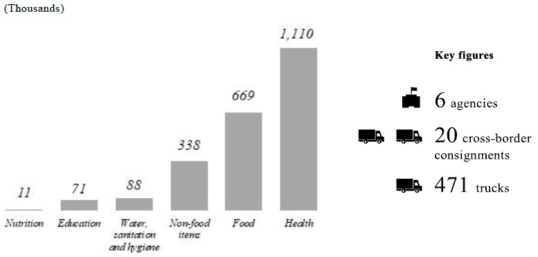 Number of beneficiaries targeted by the United Nations and its partners by cluster through cross-border humanitarian deliveries, January 2018