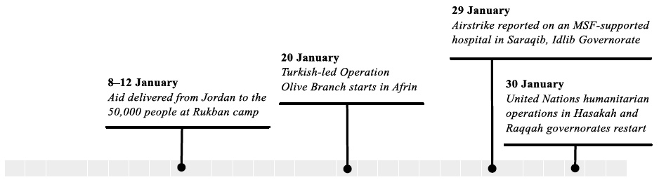 Key points: January 20181. During the reporting period, military activity in parts of the country had a significant impact on the civilian population, resulting in deaths, injuries and displacement, causing damage to civilian infrastructure, such as hospitals and schools, and affecting the ability of United Nations agencies and their partners to deliver life-saving humanitarian assistance.
