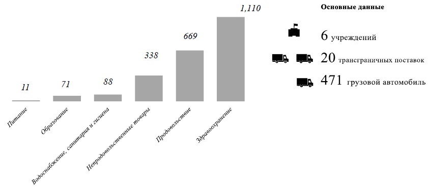 26. С начала осуществления трансграничных поставок в июле 2014 года после принятия резолюции 2165 (2014) Совета Безопасности Организация Объединенных Наций доставила через границу более 734 партий грузов с использованием более 18 625 грузовых автомобилей (12 756 грузовых автомобилей прошли через Баб-эль-Хаву и 1847 — через Баб-эс-Салам из Турции, а 4022 грузовых автомобиля прошли через Эр-Рамту из Иордании). Трансграничные операции Организации Объединенных Наций осуществлялись в дополнение к помощи, которую международные и сирийские НПО предоставляют из соседних стран еще миллионам людей.