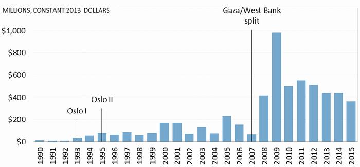 After the West Bank-Gaza split in June 2007, the United States boosted aid levels to the Palestinians, primarily in direct support of the PA's security, governance, development, and reform programs in the West Bank under Abbas (including during the 2007-2013 tenure of former PA prime minister Salam Fayyad), presumably in part to counter Hamas. As a result, the post-2007 annual average of U.S. bilateral assistance is substantially greater than the approximate annual average of $170 million from 2000 to 2007, and $70 million from 1994 to 1999.