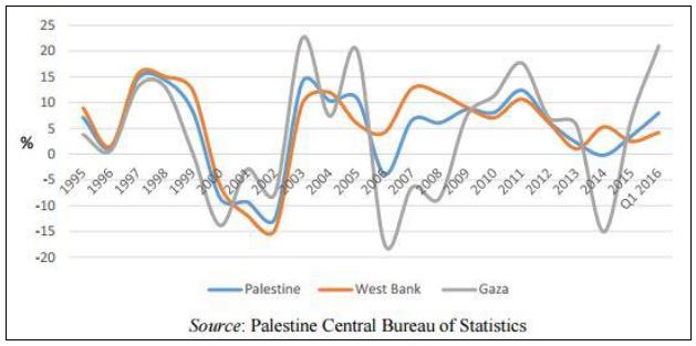 Figure 3. West Bank and Gaza Real GDP Growth: 1995-Q1 2016